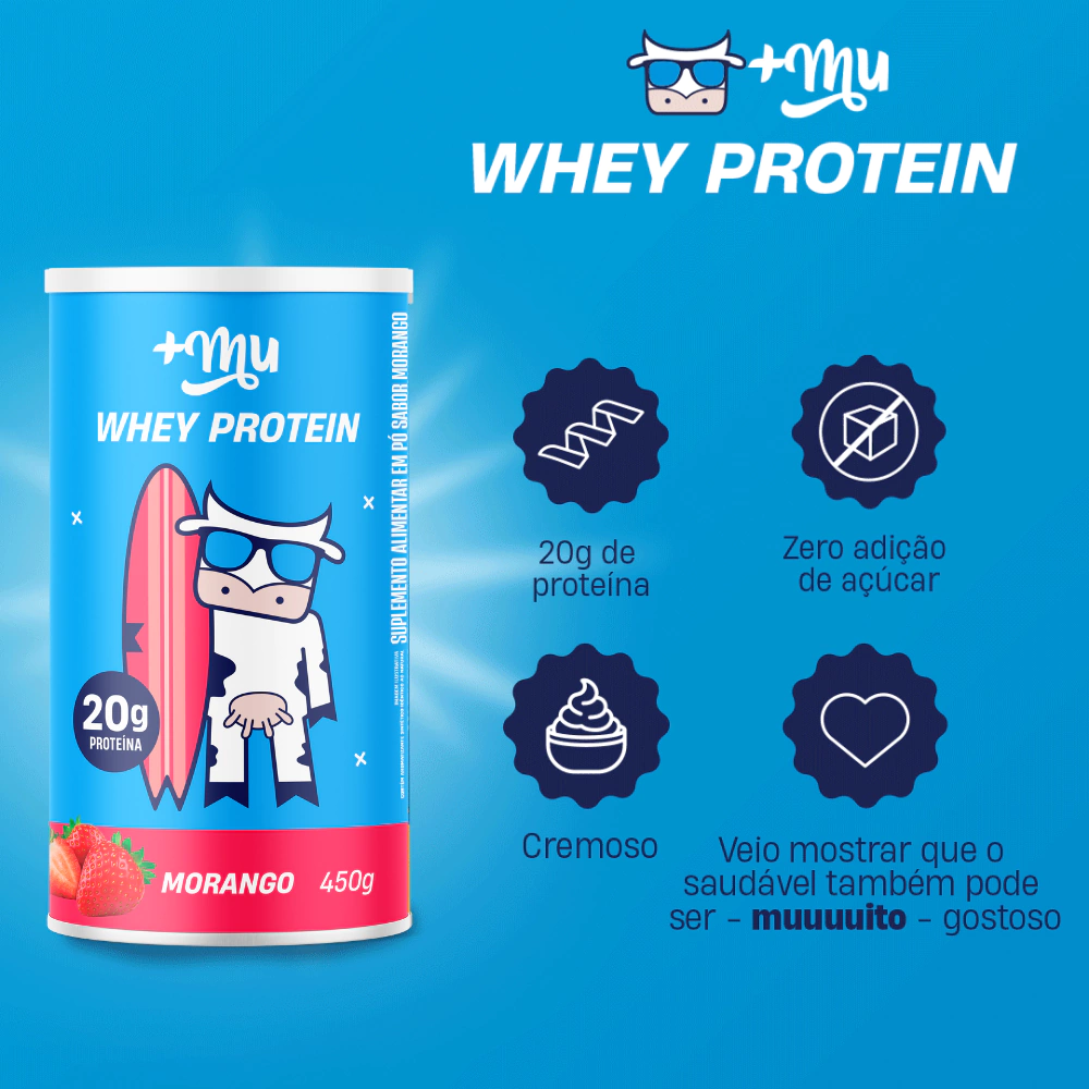 O Whey Concentrado Mais Mu possui 20g de proteína concentrada do soro do leite e tem zero adição de açúcares.